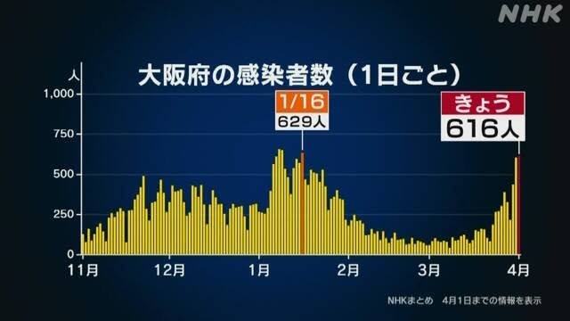 The number of cases are even higher in Osaka, which saw 616 new cases (see attached image):