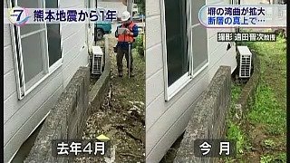 The second image is basically the same as an image I saw on an RKK TV special. It shows how parts of a wall that were connected immediate after the quake have gradually moved apart. I got the image from the following page: