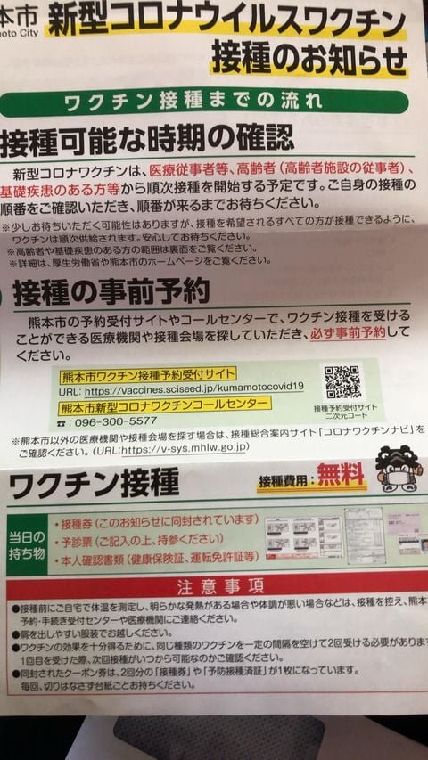 She also included a photo and a link to the Kumamoto Covid 19 page URL: https://vaccines.sciseed.jp/kumamotocovid18 Tel:096-300-5577 The above no is for calling 熊本市新型コロナワクチンコールセンター