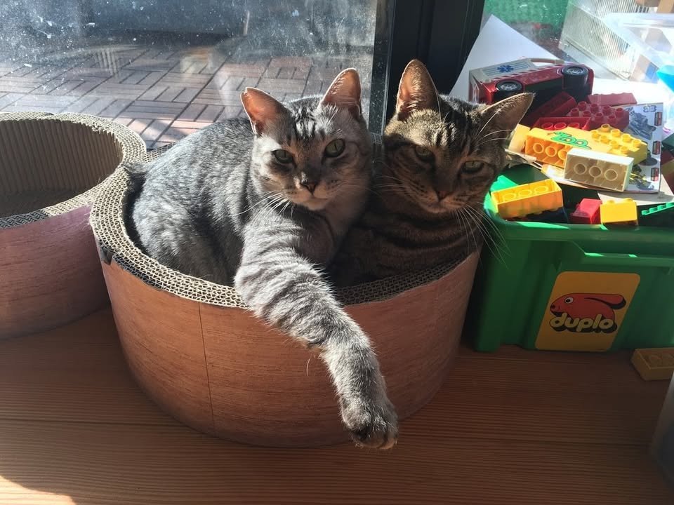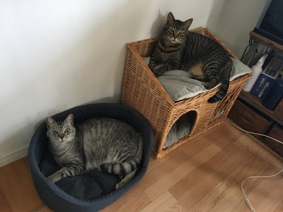 Cat 1: Ta-chan (ターちゃん) Male mixed silver tabby adopted from a shelter. About six years old. Enjoys chin pets, sunbathing, hiding in boxes, and playing with anything resembling string. He is very much not a lap cat, but he will always follow us around the house and sometimes ask for pets when he’s in the mood. My wife is very experienced with cats, but I had never taken care of a cat before we took him in. His personality and lifestyle rhythm are just right for me, but the people at the shelter did mention that he sometimes gave visitors the impression he was antisocial.