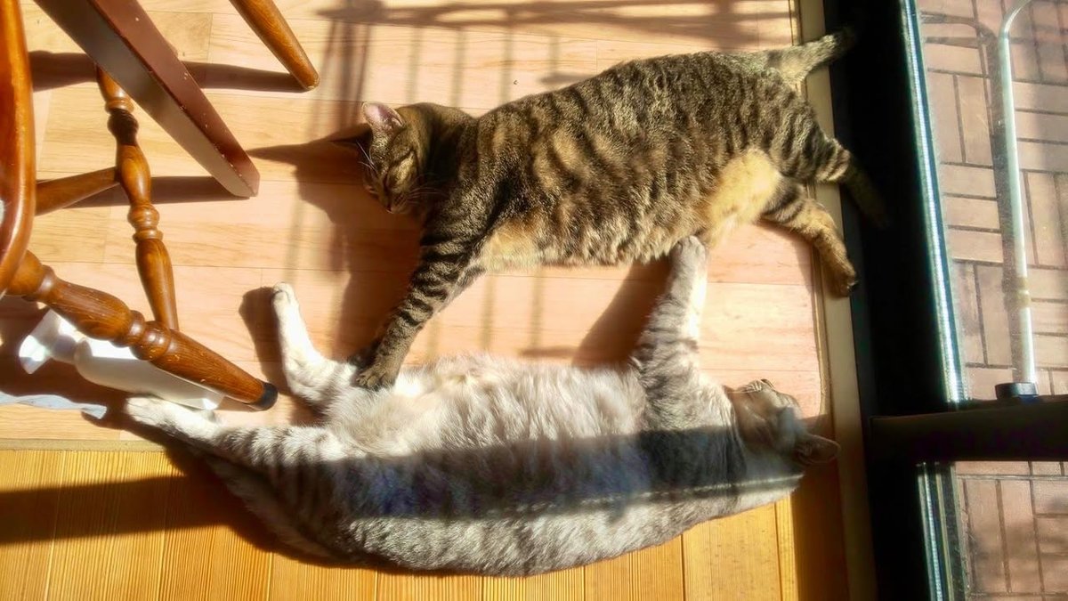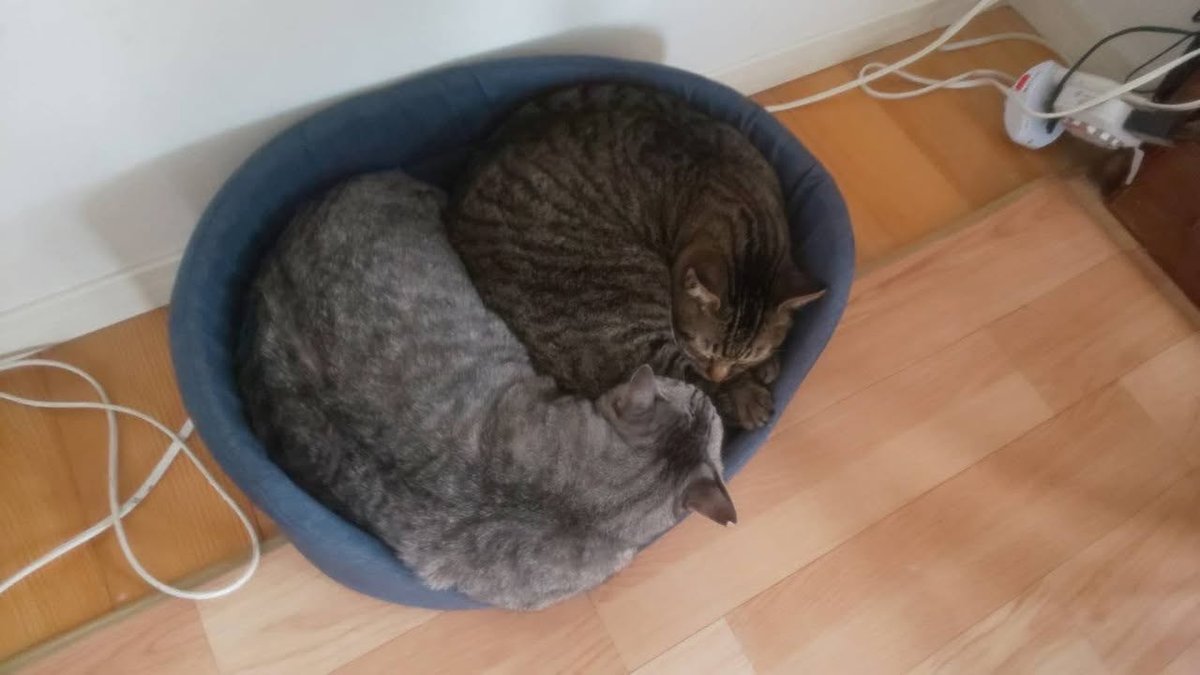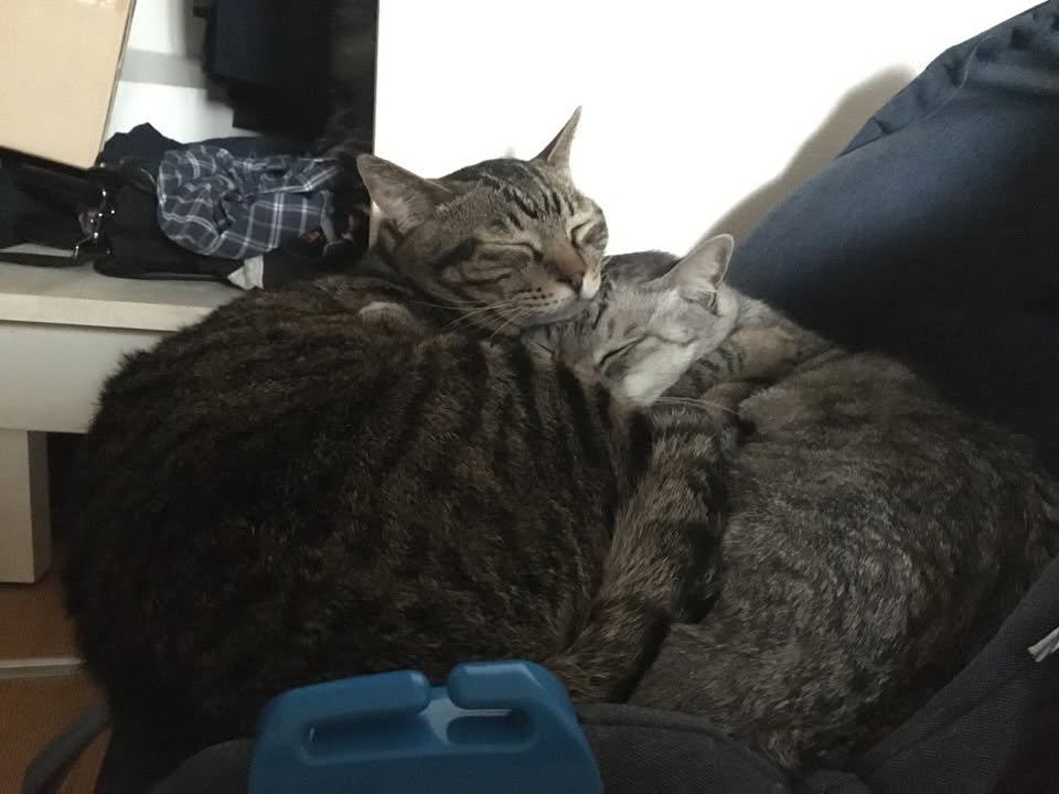 It has been much easier to take care of the two cats together than it was taking care of just Ta-chan. They play with each other, sleep together, and groom each other, so it’s usually just a matter of providing food and water and cleaning the litterbox. We don’t want to separate the couple, so we would highly prefer they both go with the same person.