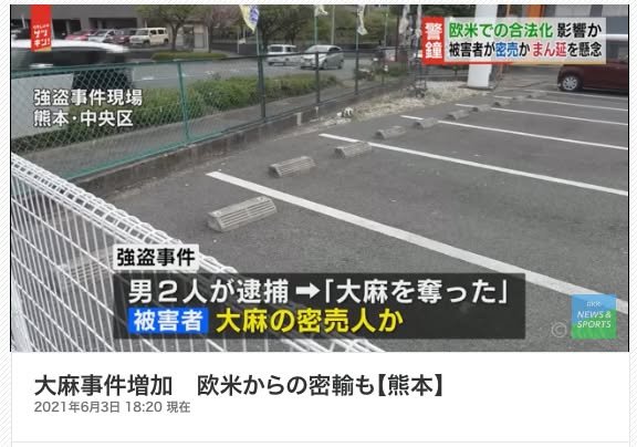 They cited a robbery that occurred in the parking lot of HIrose, a supermarket near my workplace of Kumamoto Gakuen University, as another crime involving marijuana. It was initially reported that the two assailants had used a knife to force a man in his car to hand over his phone and cash. Later, however, one of the suspects said that they were actually after his weed. The police then searched the victim’s residence and found the drugs.