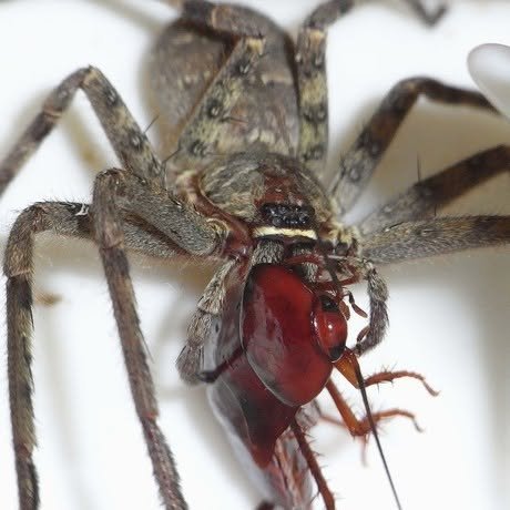 There was carnage this morning in my genkan as an ashidakagumo (Heteropoda venatoria, https://en.wikipedia.org/wiki/Heteropoda_venatoria), which means “spider with friggin’ big legs,” systematically killed, dismembered, and ate a cockroach. What remains now are only the crunchy parts. Neither my wife nor I intervened: All we could do was look on in horror. Wikipedia notes, “Besides insects it has been known to prey on scorpions and bats.” (!!) Still, that’s one less cockroach. We pardoned the spider, who remains on patrol. - William
