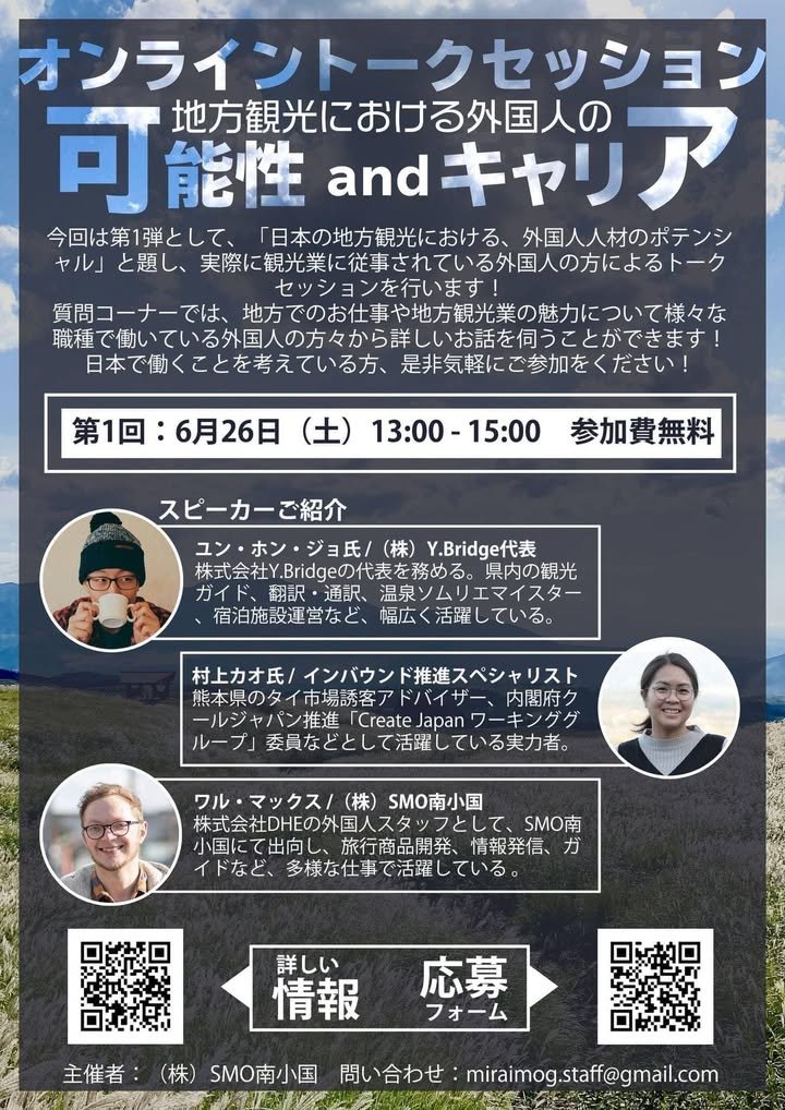 Here’s something that came to me via a friend on Facebook. It’s about a free, online event on the topic of career opportunities for foreigners in the regional tourism industry. Be aware, though, that everything will be in Japanese. – Kirk