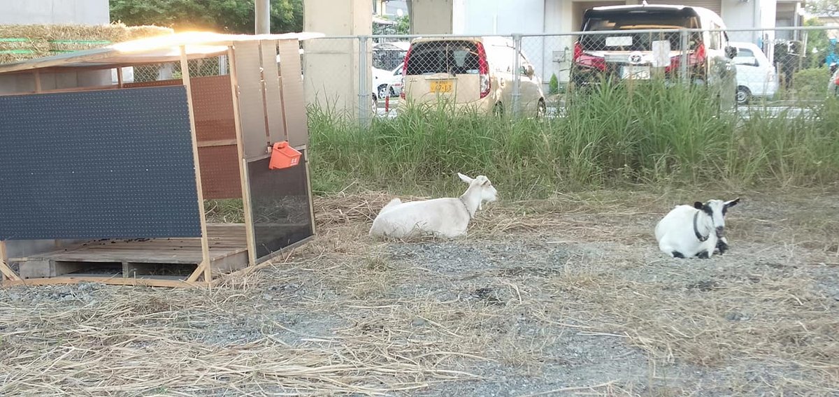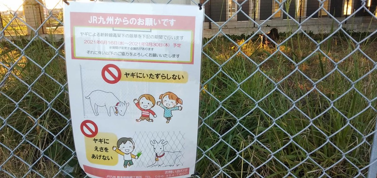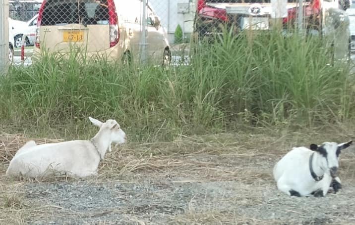 Good morning, Monday. I met 3 goats working early morning. They eat weeds and clean under the railway near Nishikumamoto station. Kumamon is a civil servant employed by prefectural government. The 3goats might be JR staffs.ーAtsuko(Ü)