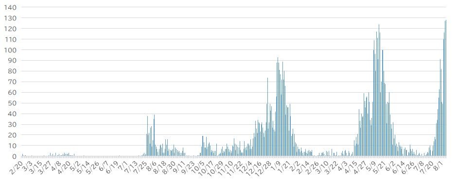 COVID-19 tracker: Japan’s cumulative case count tops 1 million as delta variant surges https://www.japantimes.co.jp/news/2021/08/06/national/coronavirus-cases-august-6/