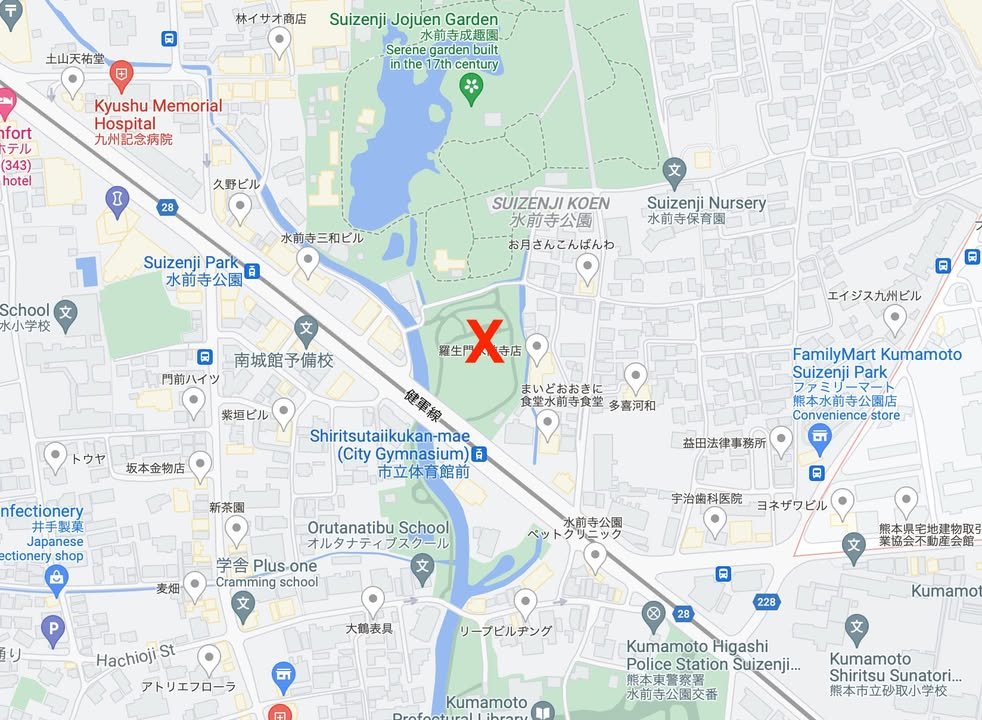 Kirk with a link to and summary about a report on RKK’s evening news that I found to be interesting. It’s about the rebuilding and relocation of the Janes Residence, which was flattened in the 2016 quakes. The historical building was the home of Leroy Lansing Janes who came to Kumamoto to teach various subjects in English in the Meiji period. The historic residence was first located in Suidocho, then moved to an area behind Suizenji Jojuen (the park) until it collapsed. Its new home will be another location near the park (see the X on the map).