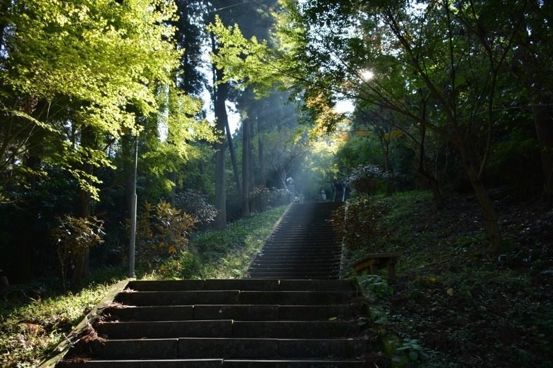 William. Autumn is here, and perhaps you’re itchy to get out. A place to visit which, if you haven’t, you can’t actually say you’ve lived in Kumamoto, is 釈迦院御坂遊歩道3333段石段 (shakainmisakayūhodō 3333 steps - there are actually more; I counted them once), which is one of the longest 参道 (sandō, a road approaching a shrine) in Japan. Near the peak is an outcrop with a beautiful view of the Yatsushiro sea and its surroundings, and many stop there, but THAT IS NOT THE POINT! Continue upward and visit the shrine, the purpose of the steps. It’s not a particularly spectacular shrine, but it does have the most excellent 参道 of any in Japan. There is a bus from Kotsu Center, but the optimal transportation mode is a car. Elevation is about 600M from the trailhead.