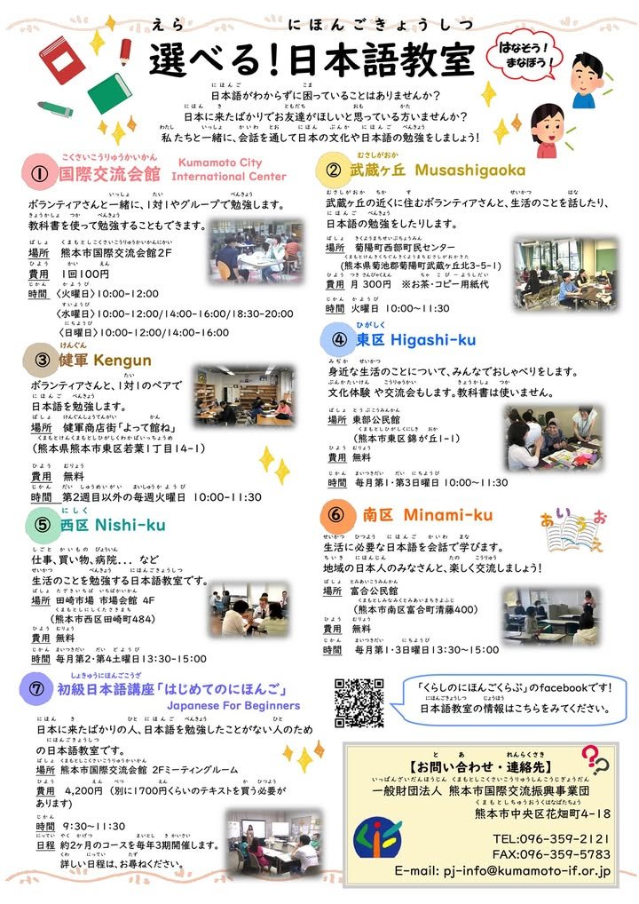 I’m not sure if there’s an English version of the same information but the important point is that there are many venues that offer Japanese classes and that you can call the phone number or send an inquiry to the e-mail address shown at the bottom if you are looking for a class that will meet your needs.