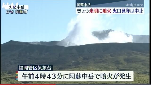 Kirk with a Japanese news report (video) about Mt. Aso’s increased volcanic activity. There was an relatively small eruption on Thursday. I noticed a bit more dust on our car today than usual and I suspect that it may be volcanic ash. On another TV report I saw small rocks that had been found in the vicinity of the volcano after a small eruption. The report says it’s the first eruption of the volcano since the summer of last year.