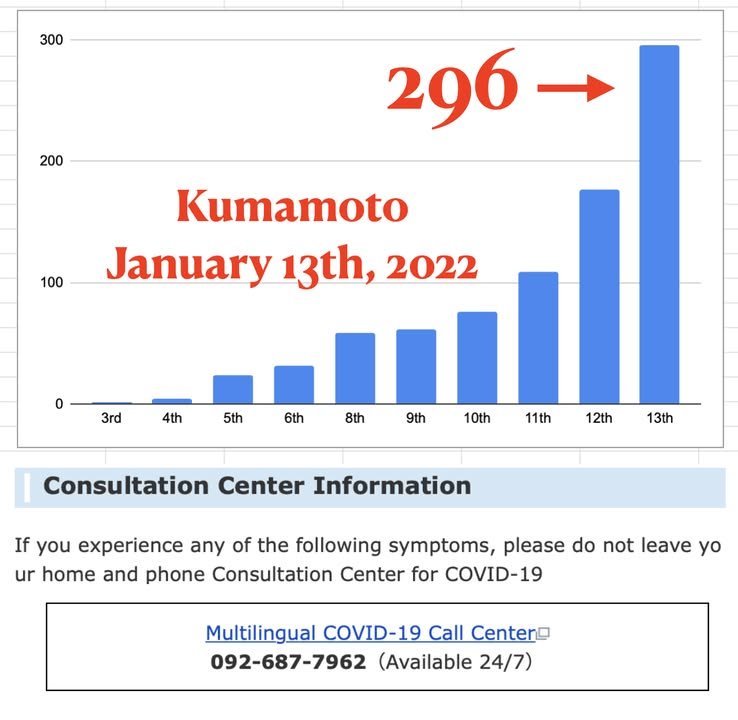 Kirk here. The numbers in the little graph I put together speak for themselves. I found out about this watching sumo on TV. Today’s number (296) and the phone number for consultation in foreign languages was shown on the screen (in Japanese). I found the same number and the English blurb you see on the following web page: http://www.kuma-koku.jp/support-center/page156.html