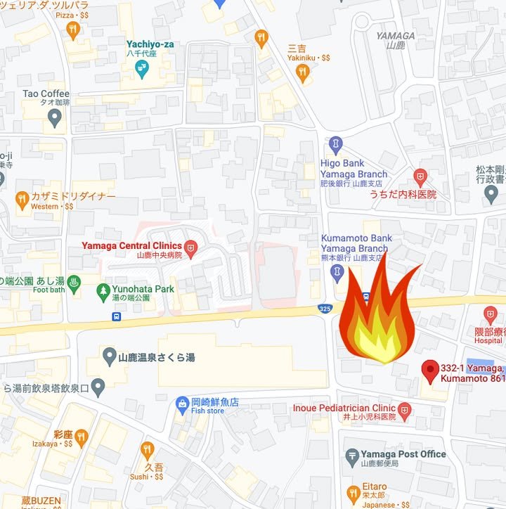 Kirk here with more sad news. There was a major fire in Yamaga, not too far from Yachiyoza, the Toro Museum, and other places of historic and cultural significance. Fortunately, no one seems to have been hurt and none of those iconic facilities were directly affected.