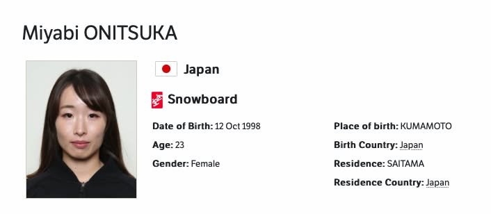 — start quote — Took up snowboarding when she was five at an indoor practice field (Alts Bandai Snow Park), in Fukuoka City, Japan, winning her first domestic competition in the first grade. Signed her first sponsorship deal at seven. In 2017, she begged the park operators (Hoshino Resorts), to make a world-class training slope where she could base herself - and they did, calling it “Miyabi Park.” (nitrosnowboards.com; olympics.com, 22 Nov 2021) — end quote