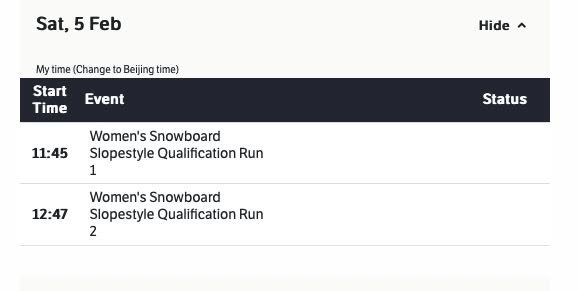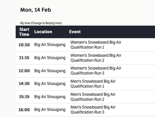 Kirk here with a little note on the Winter Olympics. I’ll be following Kumamoto’s own Miyabi Onitsuka – the amazing snowboarder this southern prefecture has produced. Her first event is tomorrow (Saturday). See the attached images for the schedule.