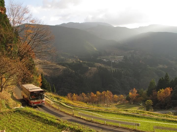 William Tomochi (砥用) might be considered a “town” were it not in perpetual peril of sliding down the hill into Midori Kawa, which knives through as a river does impatient with better places to go. Tomochi embodies that kind of feeling akin to when you’ve tilted your chair back to the point where you’re going to fall backwards but somehow don’t and retain that position for a thousand years. Tomochi is more of a thing of the mind than it is an address. There is, to say, no “there” there, a land in which the concept of “flat” remains completely foreign, more of a concept than a location. My wife’s maternal side hails from Yabe, a basin offering bounteous agricultural opportunities, and Yabe people have long looked down on her paternal side’s Tomochi people, both literally and figuratively (and Yabe people have long learned to figurate everything). Tomochi is, though, a hidden treasure, harboring many stone bridges and trailheads of paths heading out to Kyushu hinterlands more hinterlandish than itself. Buses headed out that way depart from Kotsu Center. Spring, when the trees are blossoming, is a nice time to visit. (My wife’s mother was said to have remarked every time she saw the “aka bus” heading out of town how lonely she was for her homeland.) http://misato.town/footpath.html?id=6perpetuall