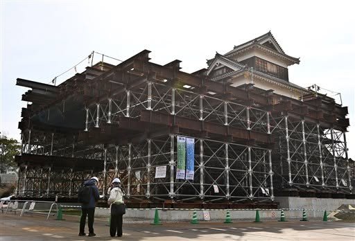 William Kenmotsu Yagura (戌亥櫓) was that turret leaning precariously on a single leg of cornerstones after the quakes. Yikes. Kumanichi reports that it will be rebuilt with traditional architectural techniques. This is nice not only for aesthetical and historical reasons but in that it gives local craftsmen a way to apply their skills, thus passing them on. https://kumanichi.com/articles/563400