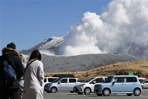 William Seems that Aso is burping again. Kumanichi reports that the danger level has been raised from 2 (which means don’t approach the peak) to 3 (which means stay the hell away from the whole mountain, as those in the photo are clearly not doing - projectiles are a thing and can travel several kilometers). Don’t try to win a Darwin Award. We will update as events unfold. https://kumanichi.com/articles/569000