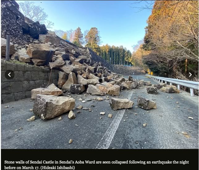 Kirk here with a screenshot of one of the pictures from an Asahi Shimbun article entitled “Powerful quake raises nightmare specter of 2011 disaster.” Of course, seeing castle walls destroyed reminded my 2016, not 2011.
