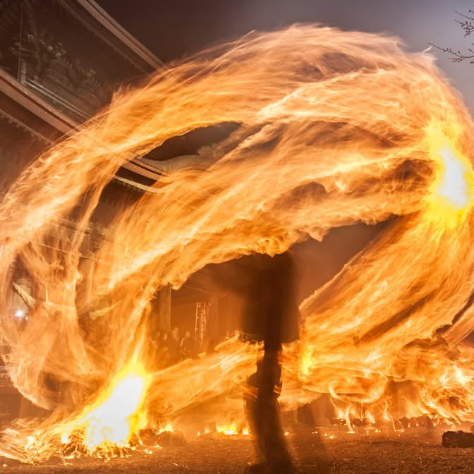This year, ordinary people weren’t allowed to swing the flaming bales aroundaround becauase of COVID-19 concerns.