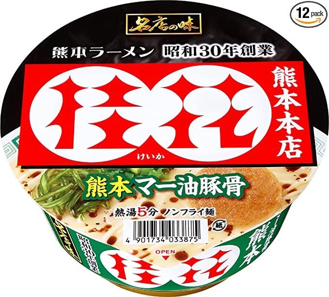 William Divisions exist akin to geologic fault lines among Japanese ramen types. Kumamoto is particularly famous for its pork-based ramen, while Tokyo goes soy sauce-based. Eww. Keika Ramen 「桂花拉麺」, founded in Kumamoto in 1955, introduced tonkotsu ramen to Tokyo and is known among ramen lovers world-wide. In addition to their in-store bowls, they sell instant ramen in supermarkets. Recently, due to personal circumstances, I have found myself consuming them: thumbs up, though obviously their restaurants are best. Google a location near you. https://keika-raumen.co.jp/shop.html