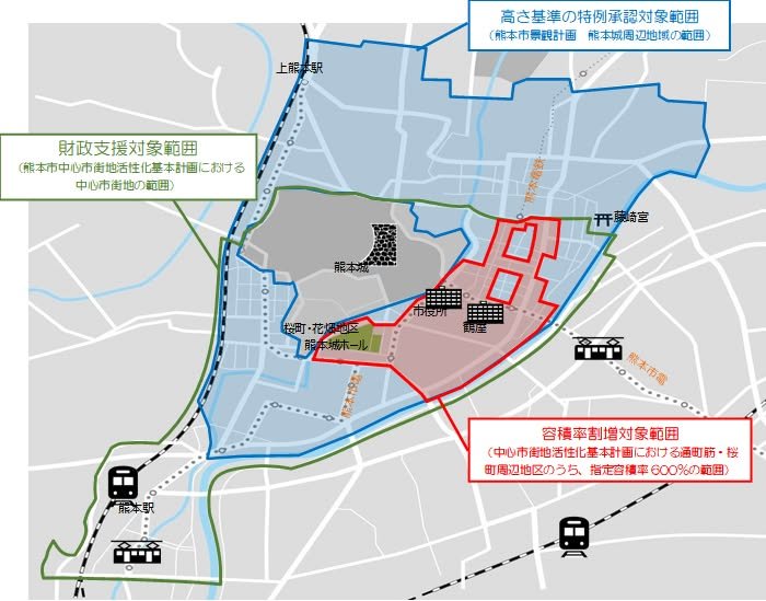 William Kumanichi has an informative article on the revitalization of downtown (Japanese, but Google Translate is your friend, so I have done so and pasted it below, unedited). The article discusses the new Kumamoto Castle Hall (熊本城ホール), located at Sakuramachi; a link to the facility is below. All of this activity is attributed to what is termed the “straw affect”, which apparently is a result of improved transportation (in this case, the Shinkansen Kumamoto Station) resulting in business relocating to that hub. On the positive side, Kumamotoites need no longer travel to Fukuoka for good shopping; on the other, these new shopping facilities siphon off business from neighboring areas, including Kamitori and Shimotori. Pictured at bottom: Kumamoto Castle Hall and a map of the planned revitalization area. Kumamoto Castle Hall site: https://www.kumamoto-jo-hall.jp/ Kumanichi article: https://kumanichi.com/articles/611657