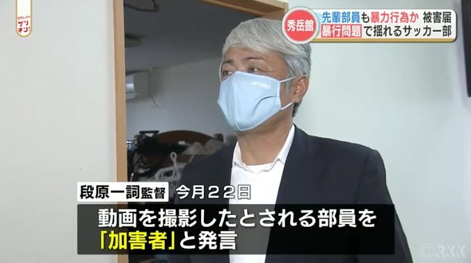 The second screenshot is of the headcoach (not the person caught on film kicking a student). He is reported to have referred to the student who published the video as the “kagaisha.” Kagaishi (加害者) is the opposite of “victim.” So, it would seem that the head coach saw the REAL harm to have been caused by the whistle-blowing student – not the violent coach.
