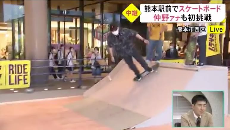 Kirk here with some news for skateboarders and/or skateboarding fans. For a fee (adults 1,200 yen; kids 1,000 yen) you can use the skateboarding facilities that have been installed temporarily in front of Amu Plaza Kumamoto (near Kumamoto Station). On the 8th of May, two olympic medalists (Momiji Nishiya and Funa Nakayama) will come to show you how it’s done.