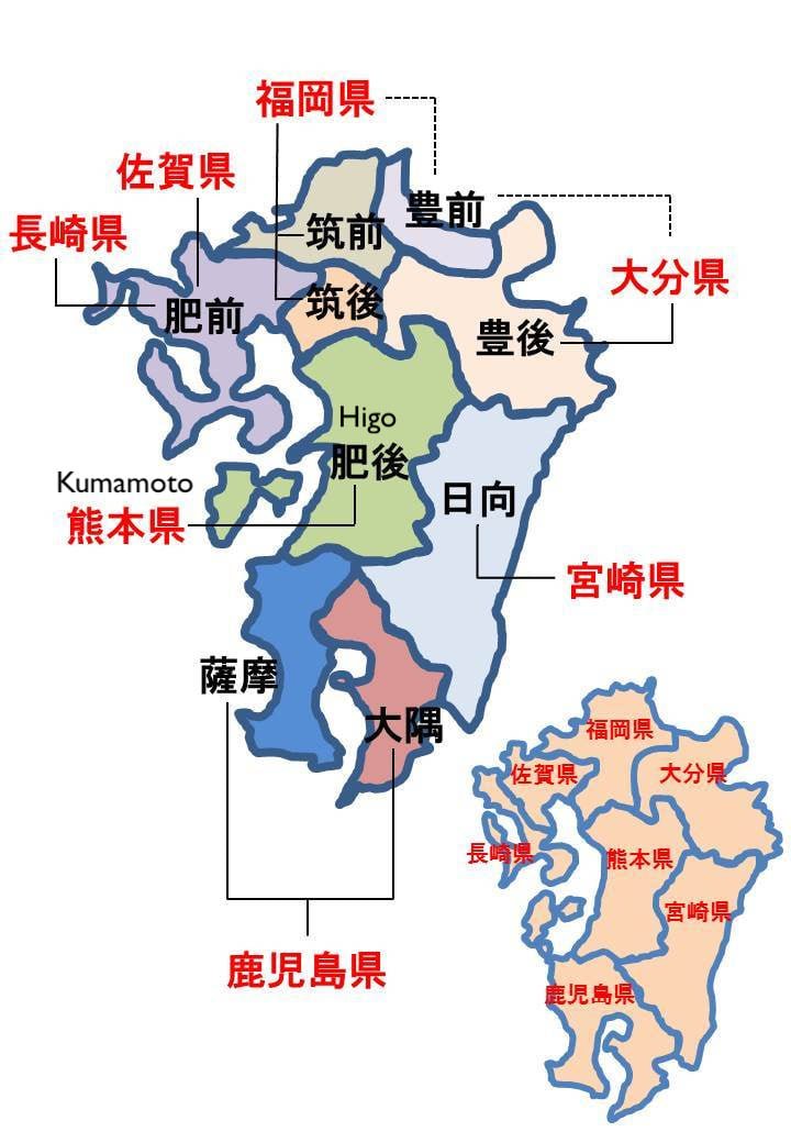This confusing han vs. kuni system was abolished soon after the Meiji Restoration when the current prefecture system was established. Hence, Kyushu now has seven prefectures, not nine, but the number 9 remains in the region name for historical reasons.