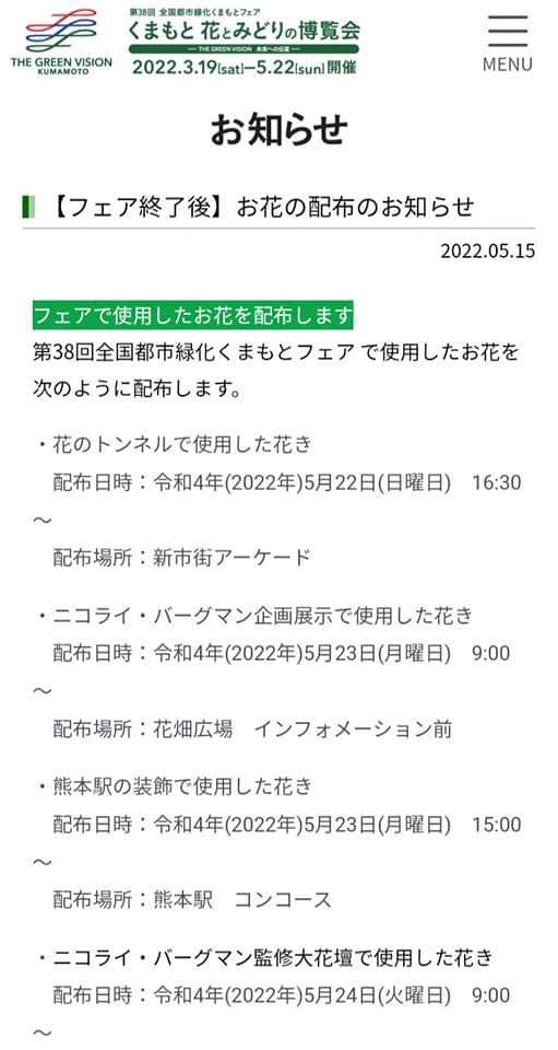 https://kumaryokkafair.com/news/detail/2052.php ーーーーーーーーーーーーーーーーーーーーーNotice of Distribution of Flowers