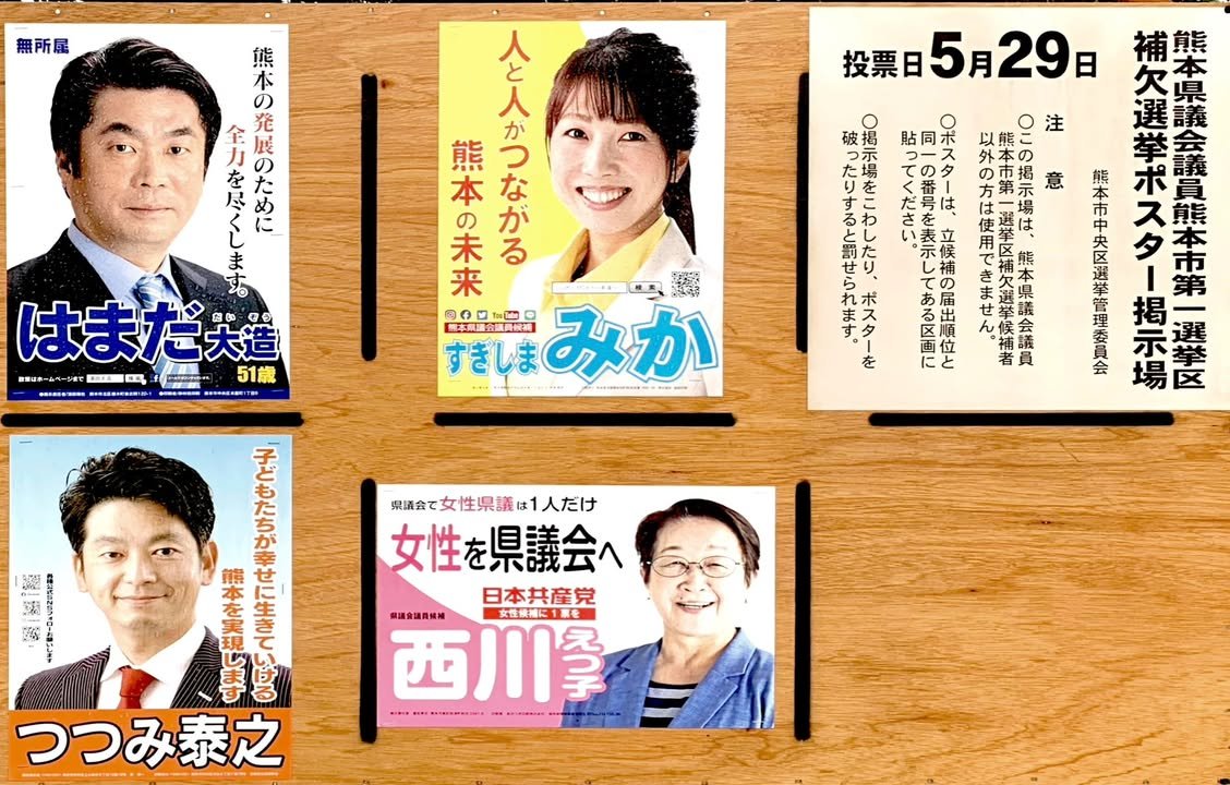 An election for some open seats in the prefectural assemble is scheduled for Sunday, the 29th in Kumamoto City’s “District 1.” Where’s this “District 1”? Good question but it’s not easy for me to answer. The official website that shows the boundries of the districts is here: