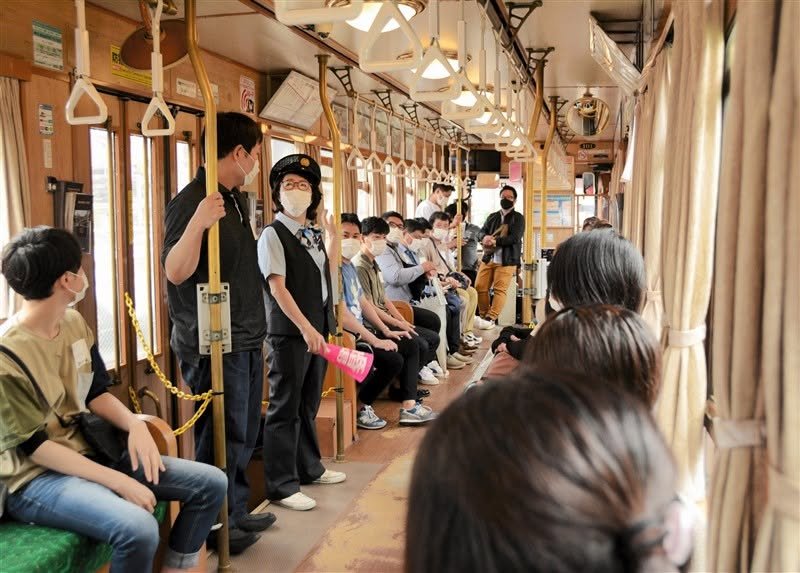 William Kumanichi reports on a lighthearted event for a rainy day: the “Love Ride” (こいのり) is a streetcar chartered by the Kengun Shopping Arcade Promotion Board which traveled between Kamikumamoto and Kengun full of some 50 lovelorn men and women in their 20s and 30s looking for matches.