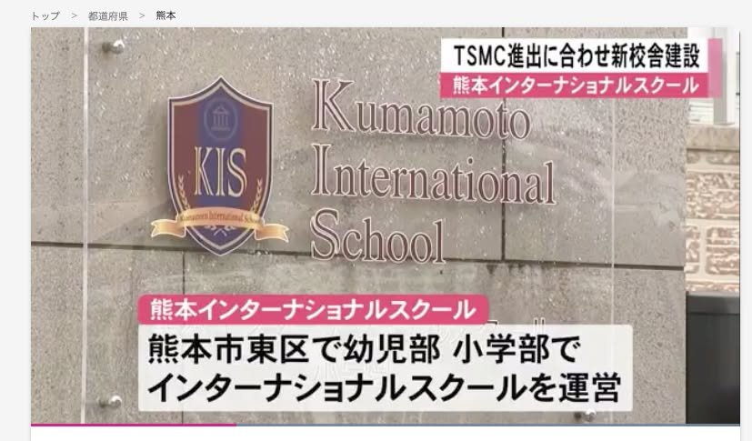 The news report briefly reviews the history of the school, explaining that it began in 2003 as a preschool and that it established a primary school in 2018. Currently, 76 children attend the school, which is located in Nishibaru (close to where a fork in the road takes drivers on the Higashi [East] Bypass to the Kita [North] Bypass). They are planning to start construction this year on a new, much larger, school in Toshimanishi (or Toshima Nishi?). The new location will be closer to the planned TSMC plant and it is expected that many of the 300 or so employees from Taiwan who come to work at the plant will send their children to the school. The school will also hire teachers from Taiwan, so it seems that Chinese will be part of the curriculum, in addition to instruction in English. The new school will have a junior high school and the eventual addition of a high school is also planned. The report says that they expect about 420 students to be enrolled by the time that all grade levels are up and running.