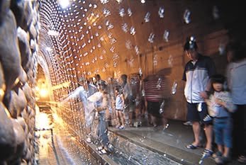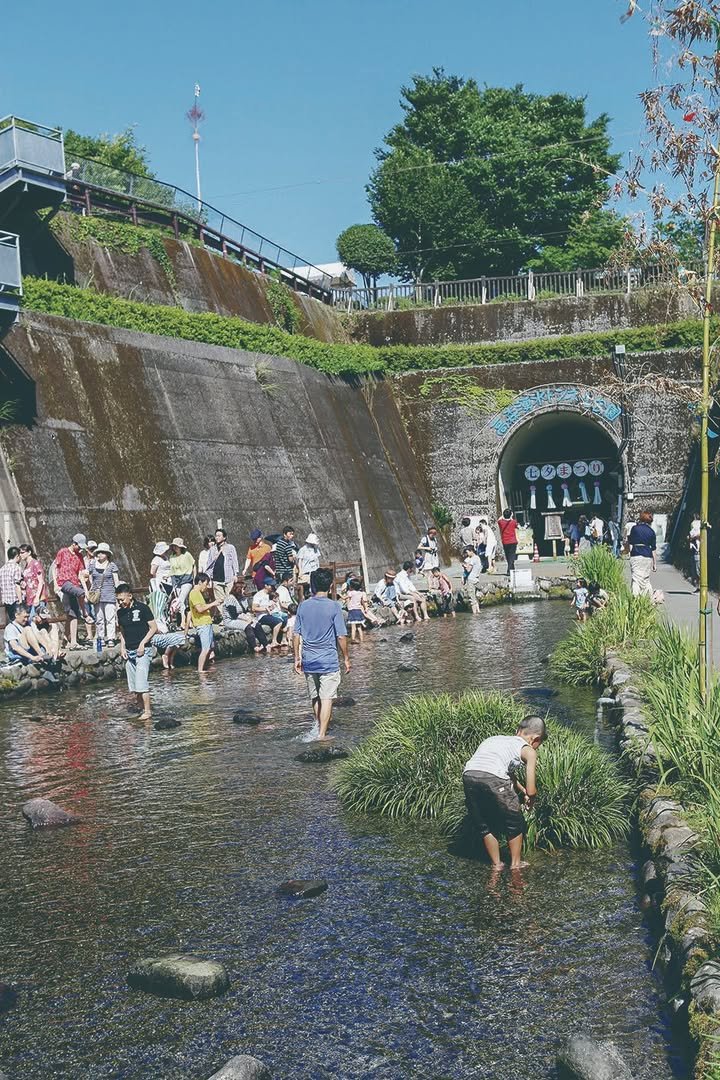 William with a bit more re: Kumamoto water. Takamori, a town in the southeast corner of Aso caldera (inasmuch as a round caldera can have a corner) is famous for its tunnel-to-nowhere. In 1973, work on the Kyushu-Chubu Crossing Railway, which would have connected Kumamoto with Oita, was begun on what is now the Minamiaso Tetsudo Takamorisen (南阿蘇鉄道高森線), which entailed digging a tunnel from the caldera floor to emerge somewhere around Takachiho. Things bogged down in 1975, when water began spouting out from tunnel walls in volume increasing as the tunnel progressed, and in 1980, with 2055m dug, the project was abandoned. The tunnel continues to spout pure spring water of 32 tons per minute, and its first kilometer, known as Takamori Yusui Tunnel Park (高森湧水トンネル公園), is open to visitors. Narrow lanes on either side of the waterflow pass through the dimly-lit tunnel, with strobe lights causing streams of water droplets cascading from the walls to appear like strings of pearls. Its 17°C year-round temperature make it cool in summer and, ironically, warm in winter. Several events are held to celebrate seasons, particularly Tanabata and Christmas. In July, colorful Tanabata decorations are hung the length of the tunnel, enhancing its sense of mystery. Below photos nabbed from the Web: tunnel entrance; water droplets under strobe lights; Tanabata decorations; tunnel end. Also, while swimming in the stream outside the entrance may be discouraged, as in the final photo, bring your trunks just in case. Access easily by train; change lines at Tateno Station to the Minami-Aso railroad and disembark at its terminal, Takamori station. The tunnel is a short walk from there. An English-language welcome: http://takaramori.com/en/spot/leisure_detail.cgi?up_spofo1=1005