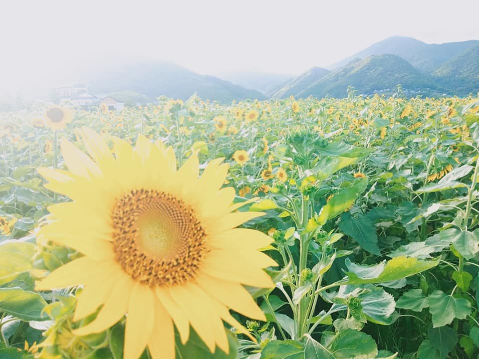 Hi Atsuko. It was hot day today too. I was excited to see blue skies and white irido-clouds because I am a summer lover. Now guess, where am I? This small field is full of sunflowers in full bloom. Kinpouzan (Mt. Kinpou) or Unzen (Mt. Unzen) can be seen in the back. This small field of sunflowers is across the street from the Nishi Ward Office,西区役所. It is my way home every day. It is neither famous nor large, but it is a good place to get a head start on summer. The ward office across the street has a library. Next to the ward office, there is a hot spring at West community center, 西部交流センター that uses the heat from a garbage incinerator, 西部環境工場. This center also has a small gymnasium, which can be used casually. I played table tennis with my family in GW and also enjoyed the hot spring (I went there to play badminton, but I did not have a reservation). You can rent badminton and table tennis equipment or bring your own. The gym courts are 200~500yen /hour, the equipment is about 100~ 200yen each, and they also sell fresh vegetables from the area. I hope you also enjoy the summer flowers, exiting games, hot spring,,,,,, Anyways HOT(๑˃ᴗ˂)و♡ West community center in Kumamoto city http://seibu-koryu.com/info/