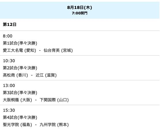 Schedule screenshot taken from here: https://www.hanshin.co.jp/koshien/highschool/summer2022/schedule.html