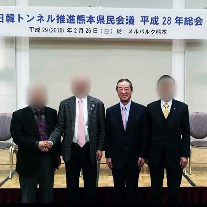 Kirk here with a Unification Church (Toitsu Kyokai) update. The gentleman pictured is NAKAYAMA Mineo, president of Sojo University. It seems that Nakayama-sensei has also been the Chair of “Kumamoto Citizens Promoting the Building of a Tunnel Between Japan and Korea” (日韓トンネル推進熊本県民会議). According to the Bungei Shunjun article, this project was proposed by Sun Myung Moon, founder of the Unification Church. The length of the tunnel would be about 200 kilometers, of which 500 meters have already been dug.