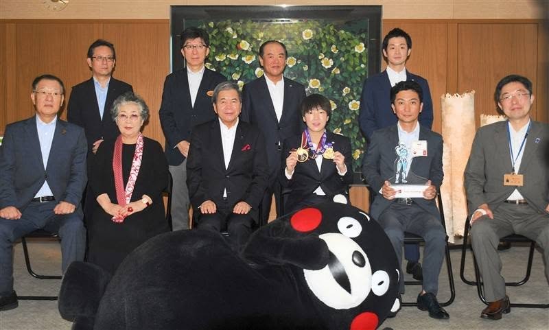 William Things one might not associate with Kumamon and badminton might be one, but remember: this guy (?) somehow swims. Pictured is Akane Yamaguchi, who won the badminton world championship in Tokyo in August, visiting with Kumamoto Governor Ikuo Kabashima. Kumamon might not be “bad"minton but “good"minton! (Drops mike as wife slaps him.) Also, a reminder about how excruciating it must be to be a human inside a stuffed animal on the beach in the middle of summer.