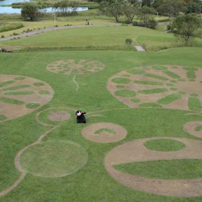 William Live long enough and learn new words: “geoglyph” (地上絵, chijō e ga) is a character or image carved into the earth. There’s a really big one of Kumamon in Shimoezu. Bring your camera-carrying drone and send us your photos. There’s also a stand from which one can view it for ¥500.