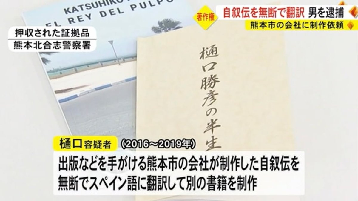 Kirk here with some strange news. A man named Katsuhiko Higuchi has been arrested because a company in Kumamoto says that he published an unauthorized Spanish-language version of his own autobiography. First, here’s a blurb about who Katsuhiko Higuchi is: