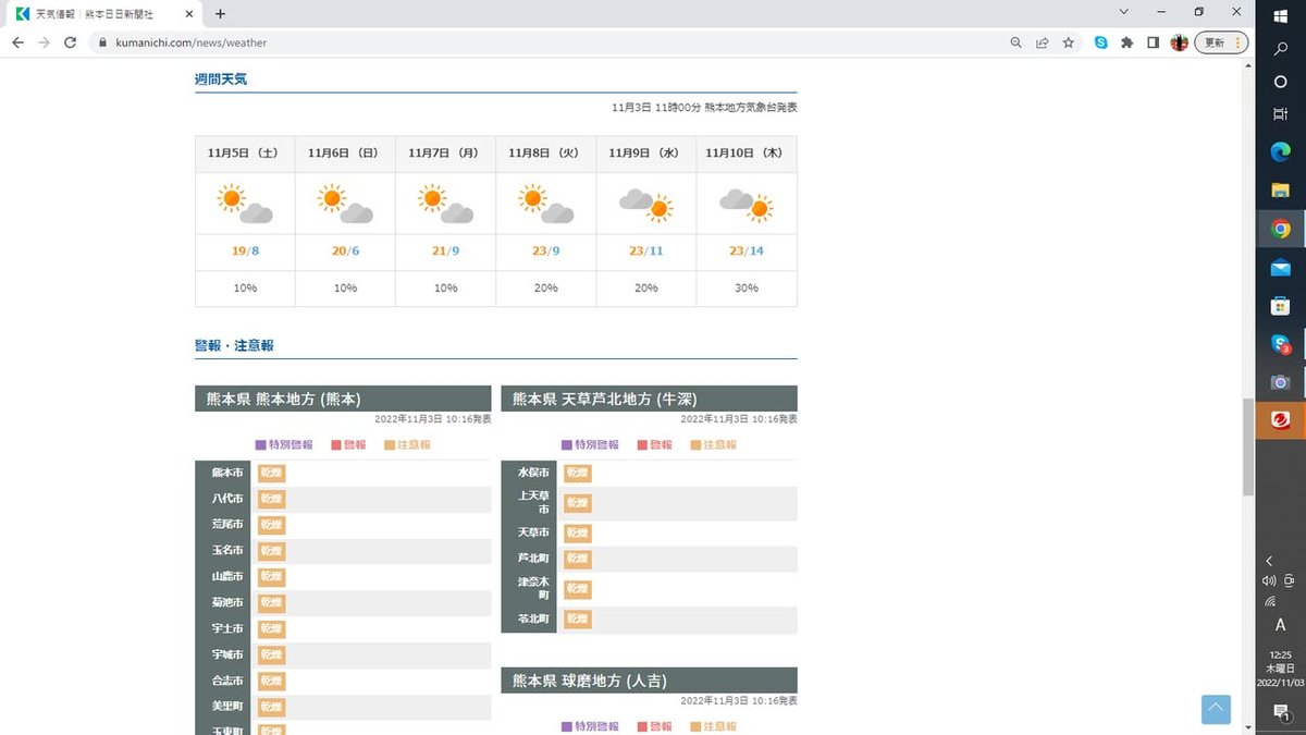 William with a quick vocabulary note: “indian summer” in Japanese is “小春びより” (koharubiyori), which is what we are enjoying now. Also, “秋晴れ” (akibare) is autumn sunshine - “Not a cloud in the sky!” as English speakers delightfully exclaim. The forecast promises further warming later in the week. Enjoy it while you can!