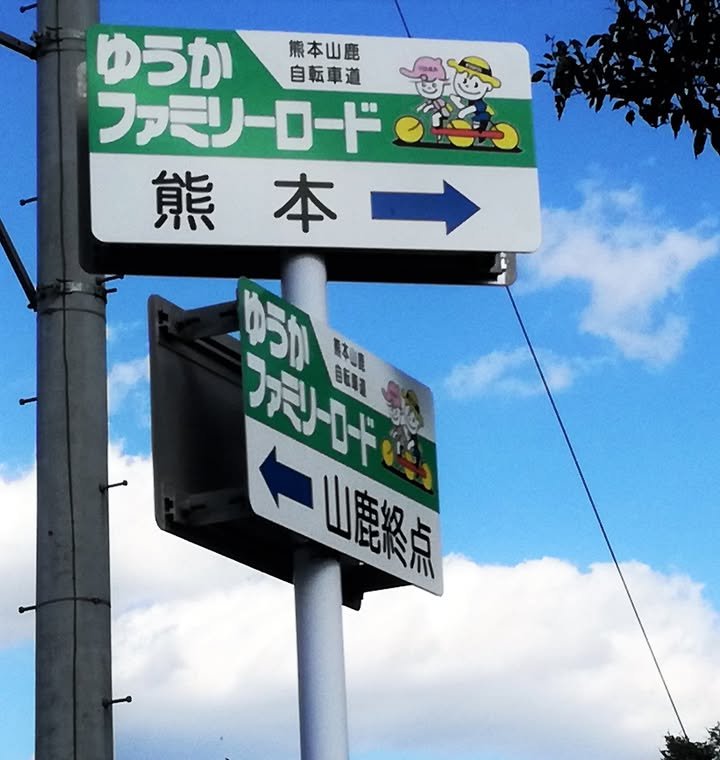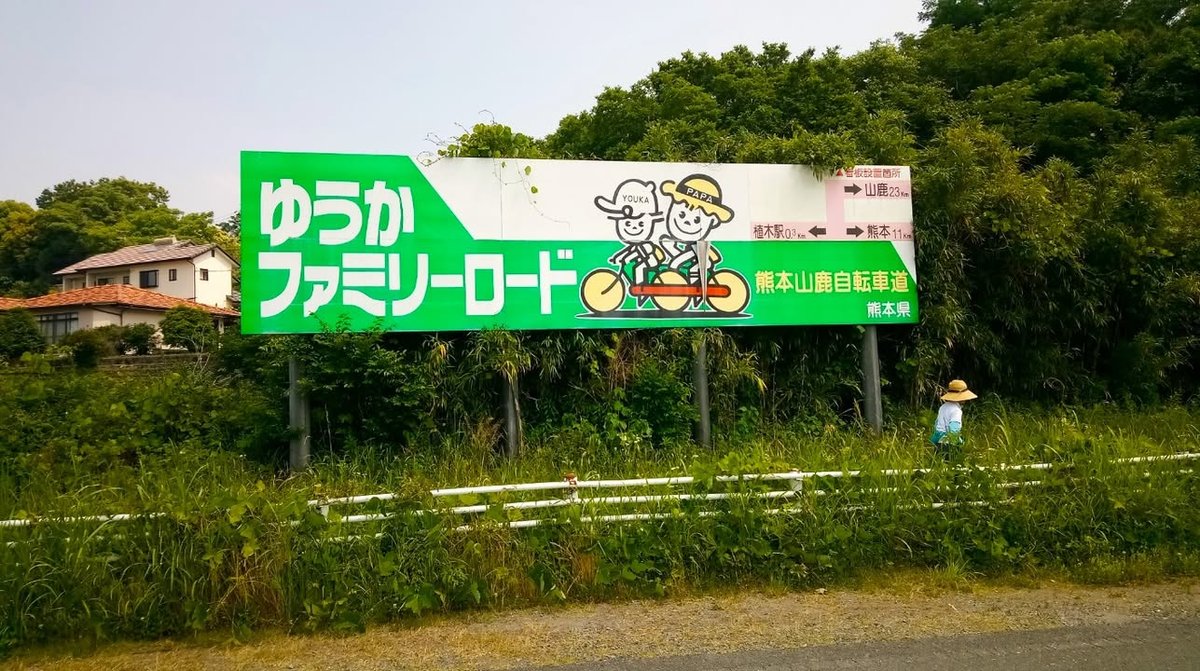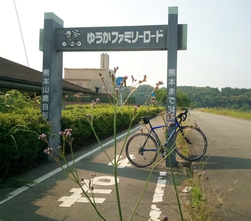 “Yuka Family Road” is a prefectural road for bicycles and pedestrians with a total length of 34 km that connects Kumamoto City and Yamaga City.