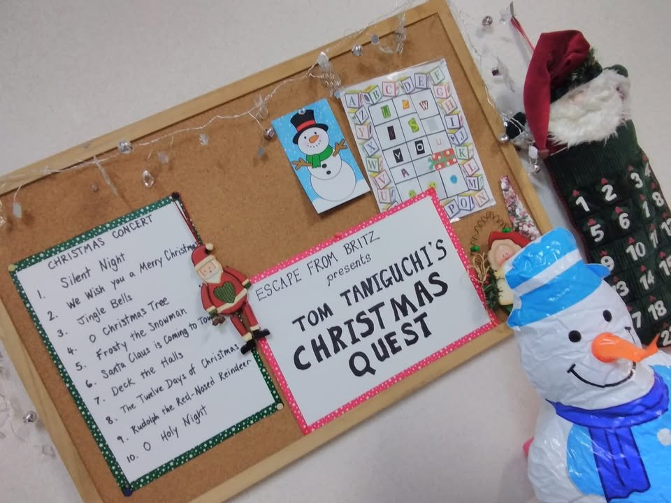 Now, Escape from Britz is back for a limited time, with a new homemade game called TOM TANIGUCHI’S CHRISTMAS QUEST. It’s a family-friendly search and solve game perfect for teams of 2-5 players. It costs 1000 yen to play (500 yen for children and students) and 75% of the money raised will be donated to Team Tonakai. Hints are available anytime you get stuck and players don’t need perfect English skills to be able to play. There is no escape element to the game (you are not locked in), there are no scary bits and no danger involved! Players will receive small prizes as well as competing for the honour of fastest and highest scoring teams!