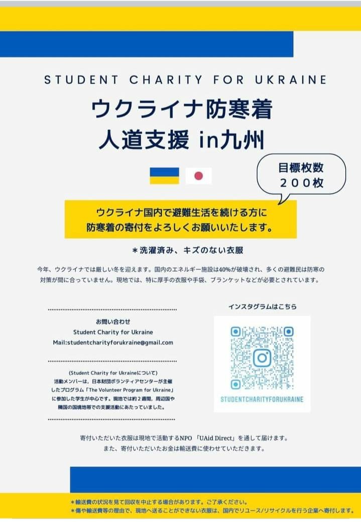 ーーーーーーーーーーーーーーーーーーーーー (お願い) ウクライナ防寒着人道支援in九州 (Emergency Aid Requests) To donate cloths against severe cold winter in Ukraine