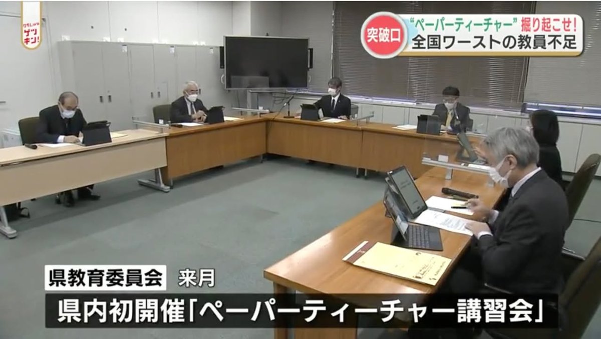 A proposed solution to the problem is to recruit “paper teachers” – people who are technically qualified to teach (have the license, etc.) but are not actually teaching now. (The expression is a variation on “paper driver” – a Japanese coinage meaning “person with a license who doesn’t actually drive.”) Unfortunately for non-Japanese readers of this page, I suspect that Japanese citizenship is required, but I’m not sure. [Postscript: Not required. See comments below.]