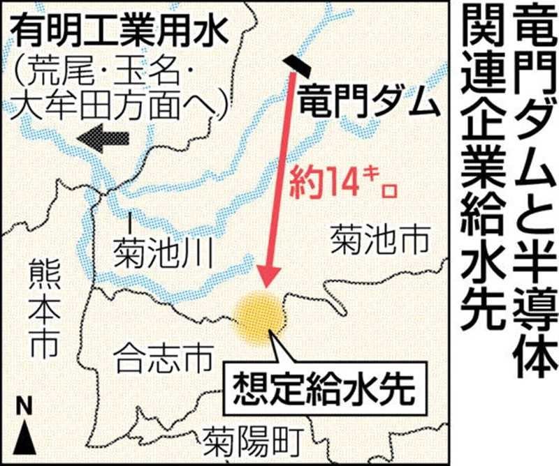 William A concern about the new semiconductor plants (a water-intensive industry) slated to open in Kikuchi is water source. Concern is that the plants would deplete Kumamoto City’s aquifers. Kumanichi reports on a plan floated to transfer water from Kikuchi: “The Ryumon Dam is a multi-purpose dam constructed by the national government on the Hasama River in the Kikuchi River system and began operation in April 2002. In addition to flood control, water is supplied for agricultural, industrial and water supply purposes, but currently about 20,000 tons of the industrial water supply capacity of 36,000 tons per day is not being used.” The distance from the dam to the site is a trifling 14K as the crow flies. It’s completion could also open up a region currently rather inaccessible. https://kumanichi.com/articles/903067