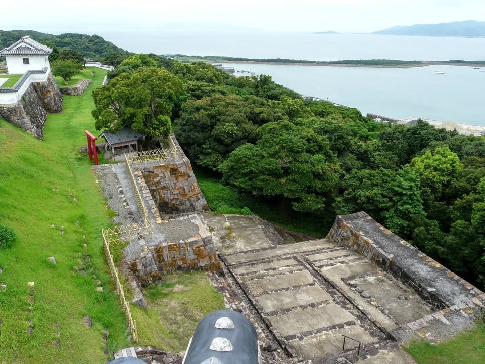 William Amakusa City is a nice place to visit, even in winter. Once making the trek down there, scenic walks are aplenty. There is an islet called Kameshima (亀島, pictured) near Wakamiya swimming beach (若宮海水浴場) which is accessible on foot by a sand spit at low tide. There is the must-visit Tomioka (富岡), a stubby peninsula topped by an eponymous (rebuilt) castle which was historically pivotal several times (Japanese Wikipedia entry: https://tinyurl.com/3yzfenfv). There is also the prefecture’s only pedestrian lift bridge (hōkaibashi, 昇開橋). Locals who want to cross the narrow strait had had to use the immensely tall, heavily trafficked road bridge (seen in the background) but can safely, calmly, and quickly zip back and forth. Kumanichi reports that the bridge has broken down and cannot be repaired until a particular part (I think it’s called a “widget”) is sourced, which is apparently difficult, so resident pedestrians are now forced to cross the tall bridge. However, photos of the bridge itself seem worth a good daytrip, even in winter. (Pro tip: there’s a Joyful at the southern base of the big bridge for breakfast or lunch.) https://kumanichi.com/articles/910588