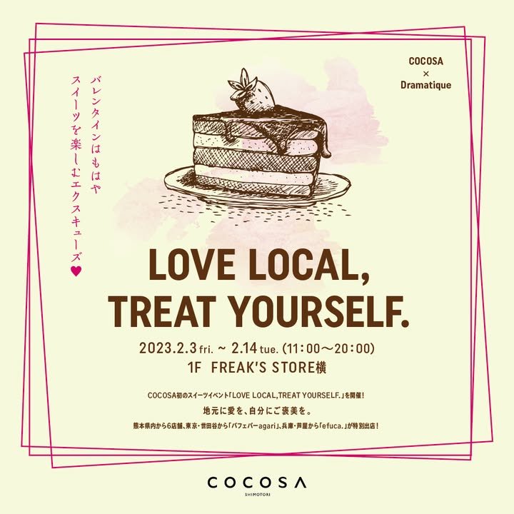 Sean here - With Valentine’s day around the corner, coupled with my desire to support local artisans/businesses, I am happy to share with all of you “Love Local, Treat yourself” Valentine’s event at Cocosa, located next to the Freaks store.