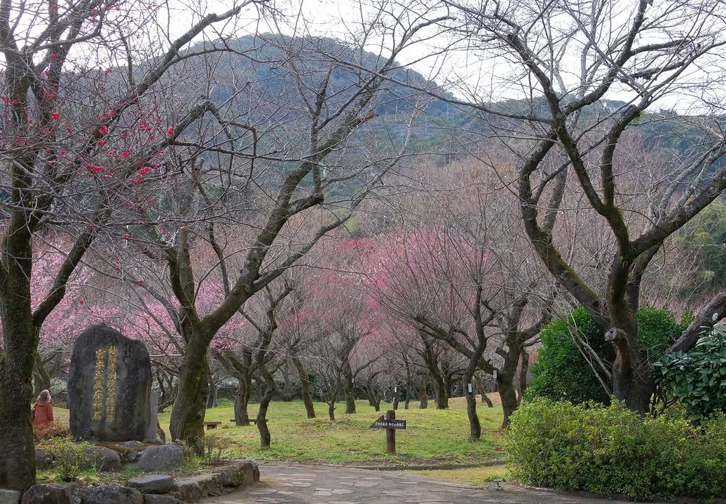 Spring is on the way, time to enjoy the plum blossoms that suddenly seem to be blooming everywhere. Two excellent spots to stroll and view are in Nishi-ku: Taniozaki Bairin Kouen (谷尾崎梅林公園)、and in Shimasaki 百梅園 (島崎4丁目10-6). They both have parking areas , but the one in Taniozaki also has an “Umegaya Mochi “stand (heated up on the grill while you wait , a kind of thin manju filled with ….of course….sweet bean paste). It also features the famous武蔵ゆかりの座禅石 (Musashi Yukari no Zazen Ishi - the rock on which Masashi sat in Zen seiza and meditated) . The parking lot fills up quickly . Hyakubaien ’s parking lot is up a narrow steep curved entrance and has space for about 5 cars. The blossoms should be great this weekend, and if you like mejiro (the tiny greenish birds with the distinctive white ring around each eye. Both can be reached by bus, with a bit of a walk from the bus stop to Hyakubaien .