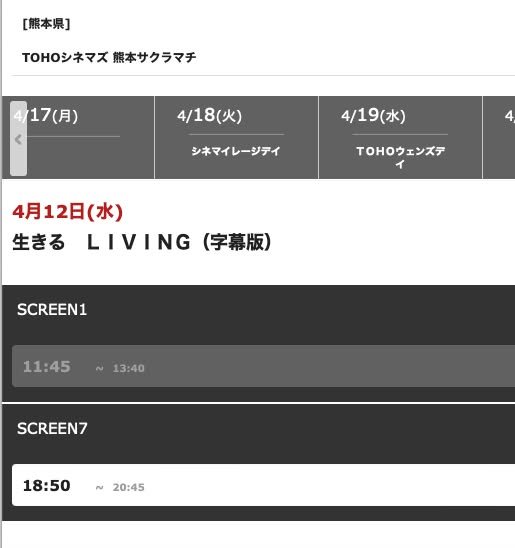 Kirk again with an update about the movie “Living.” I got this e-mail from a friend who prefers not to post to Facebook: “I saw your post about the movie LIVING on Kumamoto-I. I just wanted to make sure you knew that the Ishiguro film is now showing at Toho Cinema in Sakuramachi downtown. I saw it day before yesterday. It was exquisite.” Apparently, it won’t be shown again in the TOHOs in Kumamoto until next week (not sure about other venues). Here a link (unfortunately, Japanese language only):