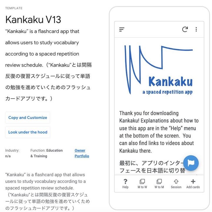 I built my app on the AppSheet platform, which is now part of Google. AppSheet is a so-called “no-code” platform, which made it relatively easy to put it together (“relatively” is the operative term – it wasn’t easy ;) ). My use of AppSheet also makes it possible for me to publish the app, which I call “Kankaku” as a free template. You will probably want to watch the first couple of sections of the following video in order to learn how the platform works: